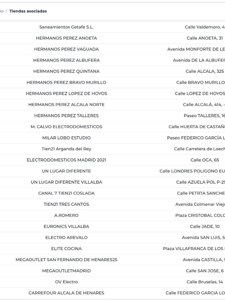 Aquí teneis el listado de comercios adheridos a la subvencion para el cambio de electrodomésticos de la Comunidad de Madrid, pincha sobre cada footo para ampliar.